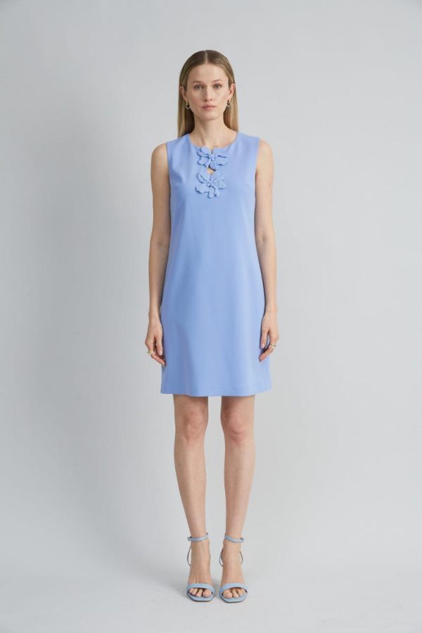 - Sleeveless Crepe Shift Dress with Flower Applique Detaling