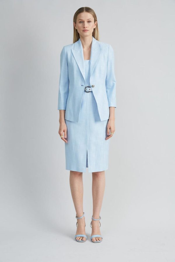 Tailored in an airy mélange fabric, our single button blazer features a knotted weave metal button & three-quarter sleeves. Single Breasted & meticulously crafted, this blazer is perfect for warmer months.