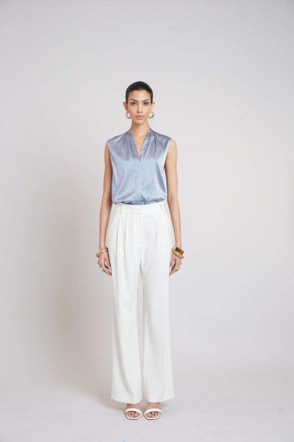 - Sleeveless Silk Satin Button Down Shirt with Hidden Placket