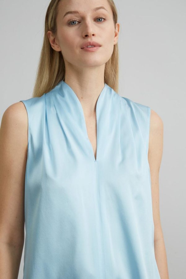 - Sleeveless Contour Neck Shirt Stretch Silk Satin Top